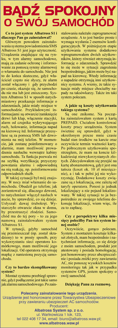 samochodzie układu Albatross GPS. Zapraszamy do działu oferta w celu